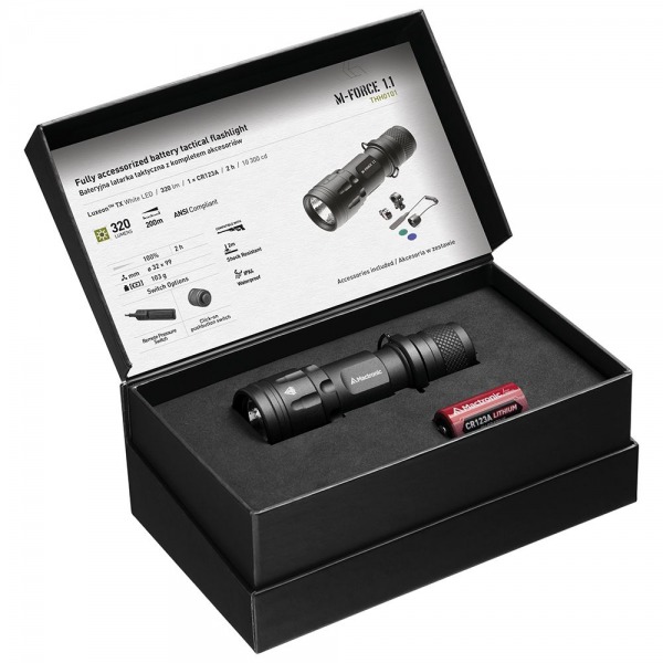 We know that out in the field, every gram counts. We took up the challenge of reducing the flashlight’s weight without sacrificing range, output and battery life. The result of our efforts is a tactical light that weighs in at scant 103g that readily deserves the M-Force designation. You won’t feel the M-Force1.1 on your pistol or long gun, but you certainly will be able to see with it, for up to 200 meters.