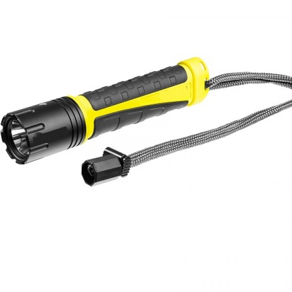 A rubber coating on the robust polymer body provides a solid grip, even with gloved hands. High shock resistance protects the flashlight from mechanical damage due to drops and daily heavy duty.